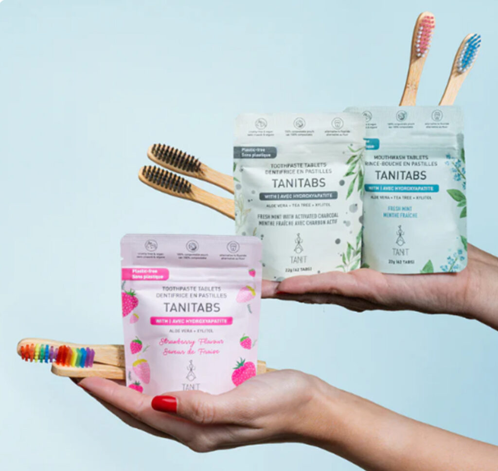A fun, gentle way to introduce kids and grown-ups to sustainable oral care. TANITABS deliver an effective clean and lasting protection — with the summer sweetness of fresh strawberries.